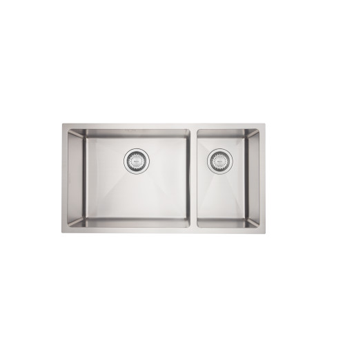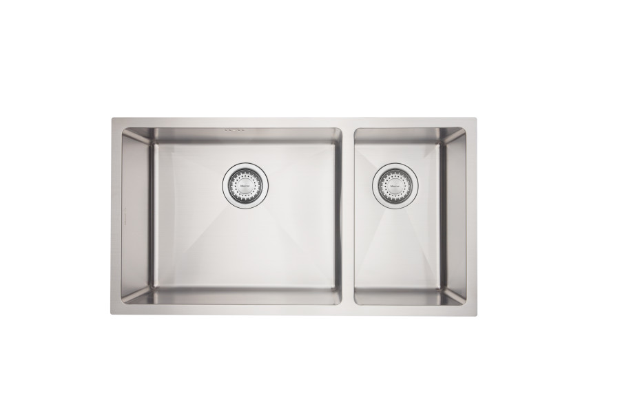 The DV Burlington 1 & 1/2 double bowl sink has a 15mm corner radius and comes standard with a 90mm round basket waste, sound deadening and 15l/m overflow.