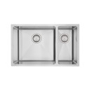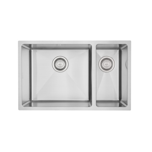 The DV Lincoln 1 & 1/4 double bowl sink has a 15mm corner radius and comes standard with a 90mm round basket waste, sound deadening and 15l/m overflow.