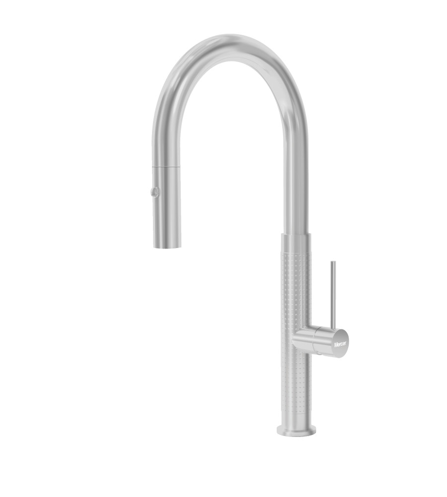 The Mercer Prague Gooseneck Pullout Mixer is custom made to suit our range of sinks and accessories.