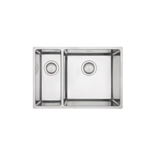 The Pressato PR210L Bowl & 1/4 sink has a 15mm corner radius and comes standard with two 90mm round basket wastes, sound deadening pads and 15l/m overflows.
