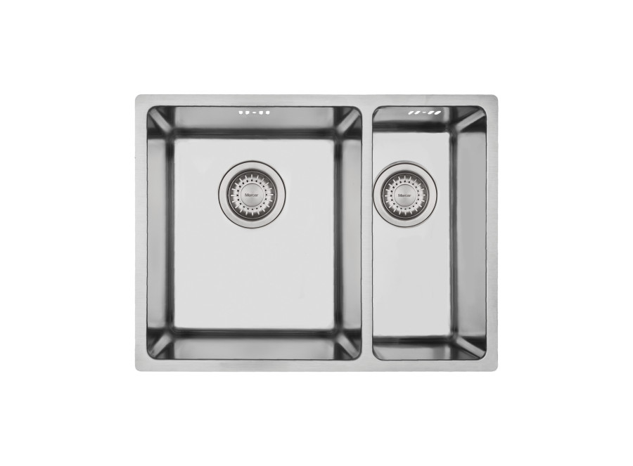 Double bowls come standard with a 20mm bridge. The Pressato PR200R Bowl & 1/4 sink has a 15mm corner radius and comes standard with two 90mm round basket wastes, sound deadening pads and 15l/m overflows.