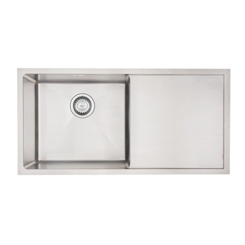 The DV Salford single bowl and drainer has a 15mm corner radius and comes standard with a 90mm round basket waste, sound deadening and 15l/m overflow.