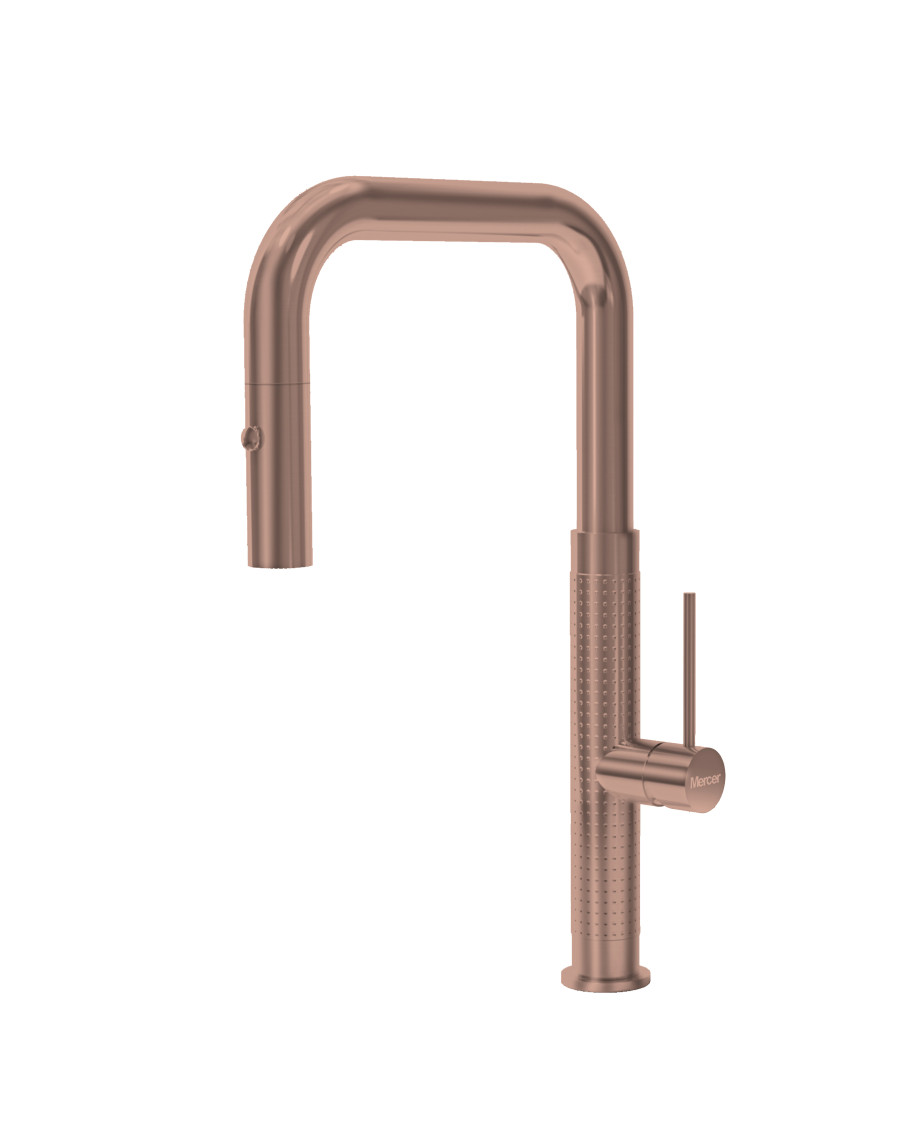 The Mercer Seville Gooseneck Pullout Mixer is custom made to suit our range of sinks and accessories.