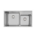 The DV Stratford 1 & 3/4 double bowl sink has a 15mm corner radius and comes standard with a 90mm round basket waste, sound deadening and 15l/m overflow.