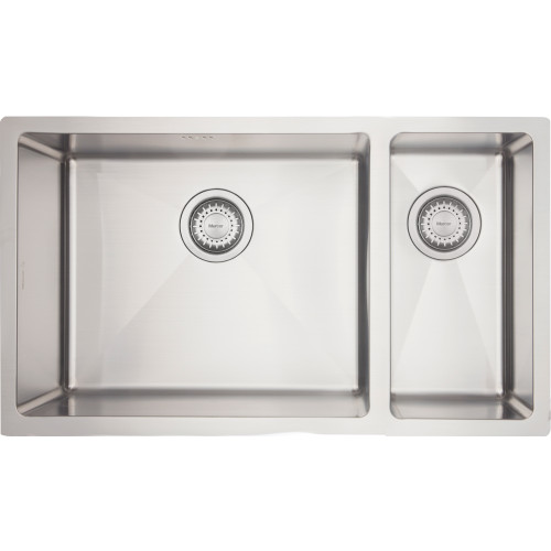 The DV Worcester 1 & 1/4 double bowl sink has a 15mm corner radius and comes standard with a 90mm round basket waste, sound deadening and 15l/m overflow.